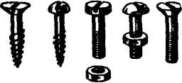 Рис. 87. Различные виды шурупов и болтов с гайками.