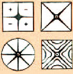 Эта картина очень похожа на так называемые хладниевы фигуры из старинного опыта. Квадратную пластину или диск из бронзы закрепляли на столбике-подставке в центре симметрии. Затем пластину посыпали мелким песком и проводили по ее краю скрипичным смычком. Пластина начинала «петь». На ее поверхности появлялись стоячие волны.