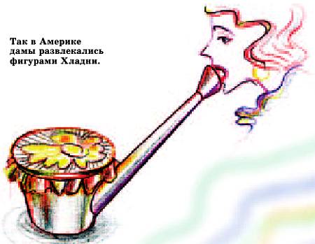 В начале XX века состоятельные американские дамы, кстати, соревновались в получении красивых фигур. Для этого открытую часть металлического кофейника с длинным носиком затягивали упругой пленкой бычьего пузыря и посыпали песком. Когда в носик произносили какую-нибудь фразу, на песке возникало множество сменяющих друг друга фигур. Наиболее примечательные из них фотографировали.