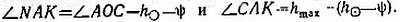 Найдем максимальную угловую высоту Нmax серебристого облака в меридиане Солнца (наш чертеж и весь расчет сделаны именно для этой плоскости). Из ΔОВС найдем вспомогательный угол ВОС = ψ: