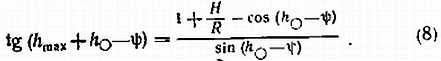 можно найти hmax. Если положить H = 82 км, то ψ = 9°09′, H/R = 0,01288. При использовании формулы (8) нужно ввести в значение