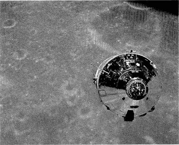 Рис. 6.20. Командный модуль «Аполлона-10» на фоне лунной поверхности. Снимок сделан из LM.