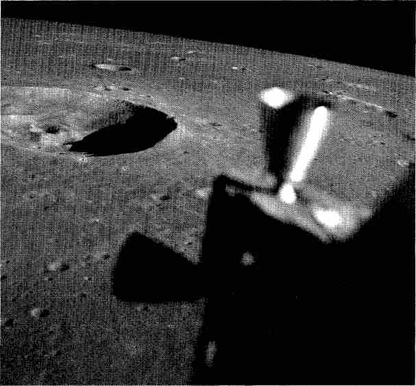 Рис. 6.21. Снимок с борта LM. Слева — кратер Маскелайн.