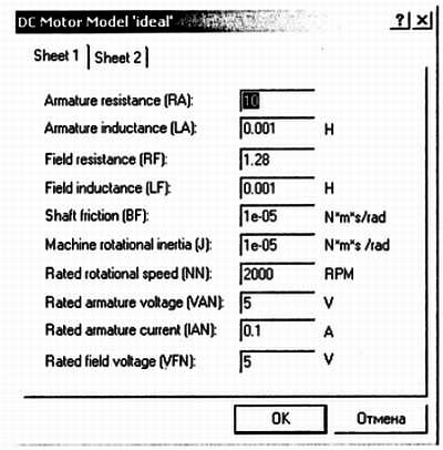 Рис. 142. Выбор параметров двигателей виртуальной модели в EWB лазерного эффекта Мастер КИТ NK300