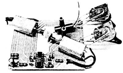 Устройство (рис. 140, а) монтируется на печатной плате размером 100x74 мм. Здесь располагаются два микроэлектродвигателя (М), лазер и электронный блок управления.