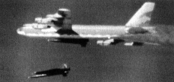 Беспилотник D-21 отделяется от B-52 для осуществления шпионского полёта над материковым Китаем. (Фото ВВС США)