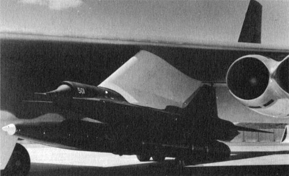 D-21, закреплённый под крылом самолёта-носителя B-52.(Фото Локхид)