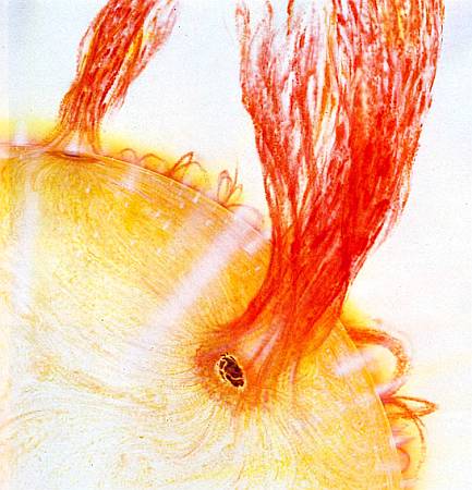 Над фотосферными факелами расположены хромосферные факелы, особенно горячие и активные области хромосферы. Это красочное явление заслуживает того, чтобы быть изображенным каким-либо художником.