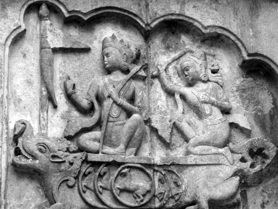 Рама и Сита на летающей повозке. Храмовый рельеф