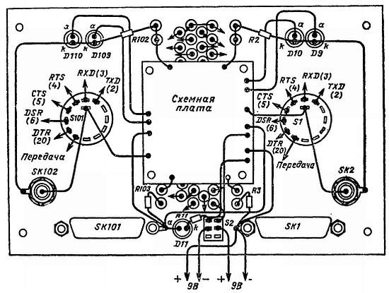 Это несложное устройство не только дает пользователю возможность изменять конфигурацию системы RS-232C, но и позволяет просмотреть разнообразные сигналы, а также выявить наиболее характерные отказы.