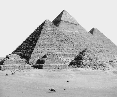 Самые знаменитые – три большие пирамиды близ Гизэ: Хеопса (Хуфу), Хефрена (Хафра) и Мекерина (Менкаура). Крупнейшая из них, пирамида Хеопса, сооружена в XXVIII веке до н.э.