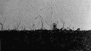Рис. 23. Нитевидные кристаллы, или усы гидрохинона, растущие из водного раствора. Обратите вниамние на неясное изображение - это ус, который освободился от мешающих ему механических ограничений и выпрямляется (параллельные полосы вызваны дифракцией - это моя оплошность!) (100).