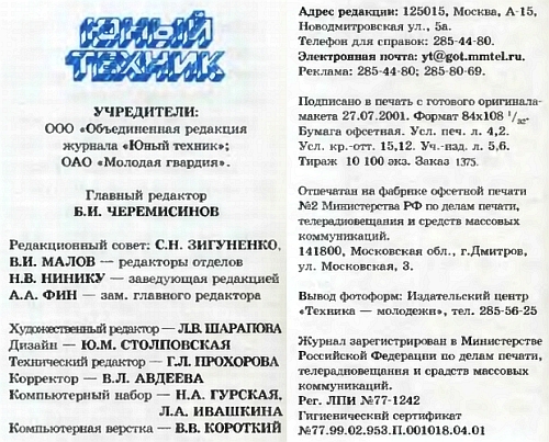 К сожалению, победителя нашего традиционного конкурса «ЮТ» № 3 — 2001 г. назвать не можем. Ответы, пришедшие в редакцию, оказались неверны: их авторы споткнулись кто на втором, кто на третьем вопросах нашего конкурса.