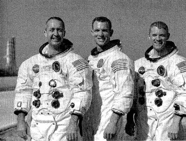 Рис. 6.9. Экипаж «Аполлона-9»: Дж. Макдивитт, Д. Скотт и Р. Швейкарт (слева направо).