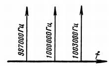 Например, если ток ВЧ с частотой 1000000 Гц модулируется током НЧ с частотой 3000 Гц, в результате получается модулированный ток с частотами 997 000 и 1003 000 Гц (рис. 91).