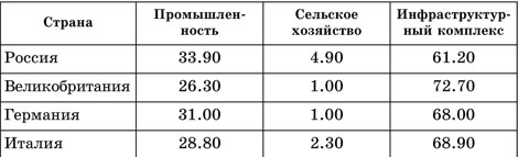 Таблица 12. Отраслевая структура экономики России и развитых стран (по валовому внутреннему продукту)