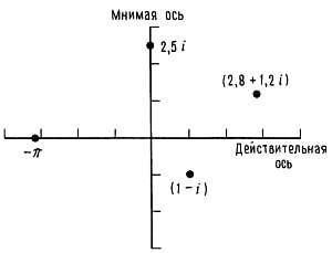 Все эти действия выполняются просто в том смысле, что i рассматривается как величина, на которую умножена мнимая часть, а все остальные — простая арифметика. Отметим, что i2 = — 1 (это используется в примере с умножением), а операция деления упрощается путем умножения числителя и знаменателя на сопряженное комплексное число, которое получается при изменении знака мнимой части на противоположный. Иногда сопряженное комплексное число отмечают звездочкой.
