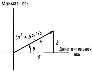 где а и b — действительные числа, а i представляет собой корень квадратный из — 1 (вместо i в остальных частях книги использован символ j для того, чтобы не возникало путаницы с обозначением малосигнального тока); а называют действительной частью комплексного числа, а b — мнимой. Для обозначения комплексных чисел используют иногда жирный шрифт или подчеркивают символ жирной линией. Во всех остальных случаях, когда нет специальных обозначений, предполагается, что вы сами знаете, когда перед вами комплексное число!