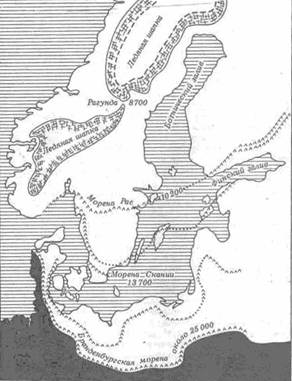 Карта последовательных стадий отступания последнего Европейского ледового покрова.