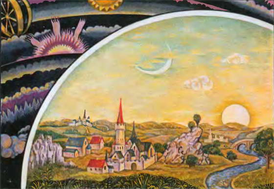 Представления о мире в Средневековье. В основе сюжета картины, автором которой является известный французский астроном и популяризатор астрономии Камилл Фламмарион, лежит предание, будто бы одному монаху удалось после длительного путешествия достичь того места, где «земля с небом сходился», и даже заглянуть «по ту сторону неба».