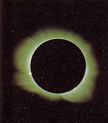Корона — последняя внешняя оболочка Солнца. Несмотря на ее очень высокую температуру, от 600 000 до 5 000 000°, она видна невооруженным глазом только во время полного солнечного затмения. Плотность вещества в короне мала, а вместе с тем невелико и число светящихся частиц. Поэтому сияет корона не столь ярко. Необычайно интенсивный нагрев этого слоя вызван магнитным эффектом и воздействием ударных волн. Они вырываются из фотосферы со сверхзвуковой скоростью и снабжают энергией внешнюю атмосферу Солнца.