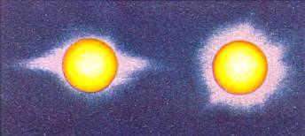 Солнечная корона в минимуме активности Солнца (слева) и в максимуме (справа).