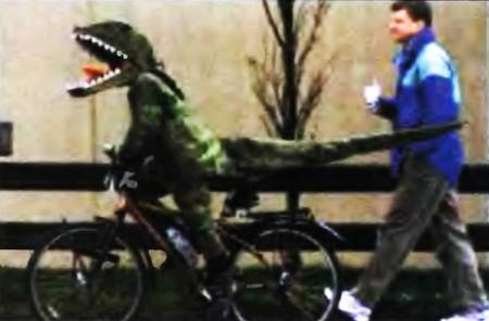 ЕЗДИЛА ГОДЗИЛА НА ВЕЛОСИПЕДЕ. Это зрелище недавно можно было увидеть на улицах канадского города Ванкувера. С какой целью она совершила свой демарш и куда делась потом, не удалось выяснить даже полиции. Похоже, кто-то из канадских школьников решил удивить мир таким своеобразным маскарадом. И как видим, это ему удалось — фотография Годзилы-велосипедиста обошла многие издания мира.