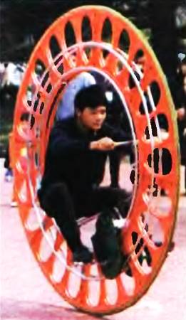 ПОПАЛ В… КОЛЕСО пекинский изобретатель Ли Уангл. Причем по собственной воле. Он сконструировал и построил «самое экологически чистое транспортное средство в мире», как сообщила о нем китайская печать. И проехал на этом моноцикле через весь Пекин в надежде привлечь внимание инвесторов к своему изобретению.
