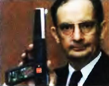 УМНЫЙ ПИСТОЛЕТ сконструирован сотрудниками австралийской компании «Метал Сторм». Чтобы воспользоваться им, нужно надеть на палец специальное кольцо, в котором заложен ретранслятор, передающий пистолету особый ко/t идентифицирующий владельца. В чужой руке пистолет стрелять не будет, зато хозяин, запрограммировав свое оружие, может одним нажатием курка выпускать одну, две, а то и три пули разом.