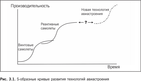 Если мы хотим радикально ускорить темпы внедрения инноваций в области проектирования авиатехники, нам придется найти еще одну S-образную кривую, отражающую траекторию развития технологии, которая не только обеспечит превосходство по техническим показателям, но и будет экономически жизнеспособной[19].