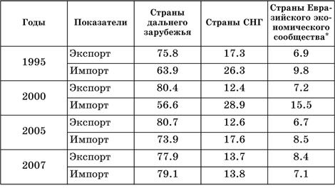 * К странам Евразийского экономического сообщества (ЕврАзЭС) относятся: Беларусь, Казахстан, Киргизия, Россия, Таджикистан, Узбекистан. Данные по экспорту, импорту и динамике за 2006—2007 гг. приведены с учетом Узбекистана, вступившего в Евразийское экономическое сообщество в 2006 г.