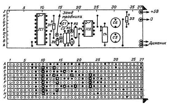 Рис. П2.20. Монтажная схема звукового логического индикатора.