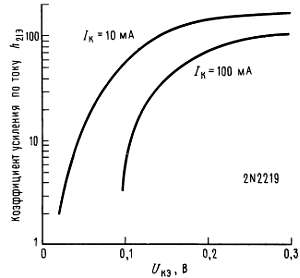 В связи с этим уменьшается эффективное значение h21э, и для того, чтобы потенциал коллектора был близок потенциалу эмиттера, приходится поддерживать относительно большие базовые токи. Это подтверждают результаты измерений, приведенные на рис. Ж.2.