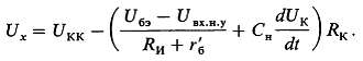 2. Определяется коллекторное напряжение Ux, при котором выходное напряжение переходит от линейного нарастания к экспоненте из уравнения