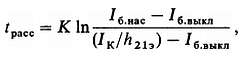 Времена задержки и рассасывания носителей в базе. Обычно времена задержки очень малы. Главную роль играет постоянная времени, которая определяет снижение заряда емкости базы до Uбэ и равна в общем