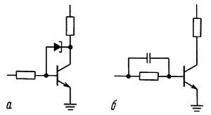 Рис. 13.54. Схемы ключей с повышенным быстродействием. а — с диодом Шоттки; б — с ускоряющим конденсатором.