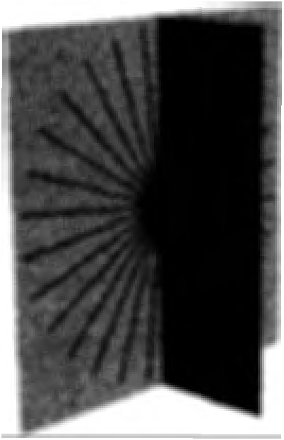 С другой стороны, в закрученном сценарии линии поля распределяются равномерно по всем направлениям, только находясь рядом с браной. В направлении, перпендикулярном бране, их очень мало (рис. 89). Так как линии гравитационного поля распространяются в основном вдоль браны, гравитационное поле выглядит почти тождественным полю, связанному с телом в четырех измерениях. Распространение в пятое измерение настолько мало (не больше, чем планковский масштаб длины 10-33 см), что мы можем его проигнорировать. Хотя дополнительное измерение бесконечно, оно несущественно для гравитационного поля связанного с браной тела.