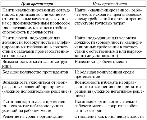 Конфликты между целями организации-работодателя и претендента на вакансию