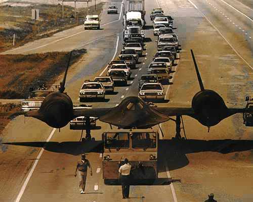 Транспортировка SR-71 Blackbird по шоссе в Музей авиации на авиабазе ВВС Робинс в Джорджии. (Фото Джея Миллера)