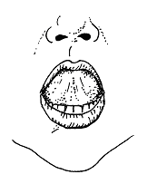 Улыбнуться, приоткрыть рот, положить широкий язык на нижнюю губу. Удерживать его в таком положении на счет от 1 до 5-10.
