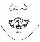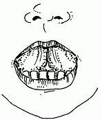 Приоткрыть рот, положить язык на верхнюю губу и совершать движения широким передним краем языка по верхней губе вперед и назад, стараясь не отрывать язык от губы, как бы поглаживать ее.