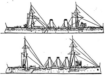 «Касаги» (вверху) и “Цусима” - типичные крейсера- разведчики времен русско-японской войны