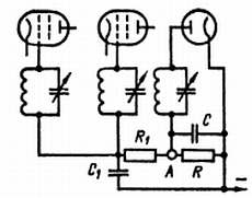 Н. — Но, мой дорогой Любознайкин, то, что ты делаешь, просто безумие! В точке А мы имеем продетектированное напряжение, т. е. напряжение НЧ. Ты же не станешь устраивать своеобразную обратную связь, я бы даже сказал отрицательную обратную связь, прилагая напряжения НЧ к сеткам ламп, стоящим перед детектором.