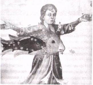 Рис. 21.1. Первое известное описание галактики Андромеда дал персидский астроном Аль-Суфи (903–986) в своей «Книге о неподвижных звездах». Это объект около рта рыбы, описанный как «маленькое облако».