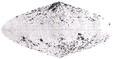 Рис. 21.7. Распределение 11 475 спиральных туманностей по небу, построенное Карлом Шарлье в начале XX века. Совсем мало туманностей лежит в поясе Млечного Пути (горизонтально проходящем через центр).