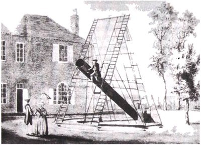 Рис. 21.2. Телескоп Вильяма Гершеля диаметром 47 см, которым он пользовался для «прочесывания неба».