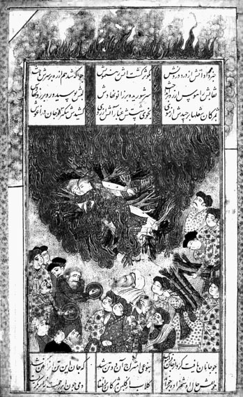 Самосожжение вдовы на погребальном костре мужа. Индийская миниатюра