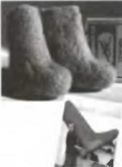 На Семипалатинской фабрике в Казахстане сваляли царь-валенок. Весит он 16,5 килограмма, а длина голенища составляет почти 180 сантиметров. Эта же фабрика выпустила самые маленькие в мире валенки (на фото).
