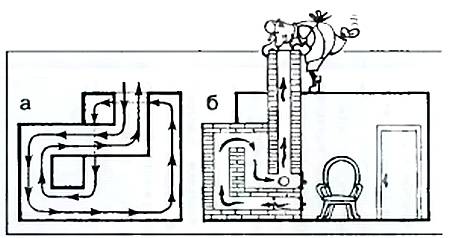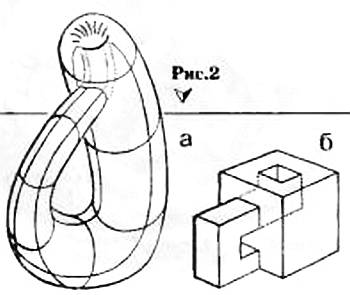 Оказывается, что и «бутылка Клейна» давно известна человеку и используется им в своей повседневной практике. Для осознания этого достаточно сопоставить между собой топологический эквивалент «бутылки Клейна» — ограненную бутылку и схему обычной печки, находящейся в помещении (см. рис. 8 а, б).