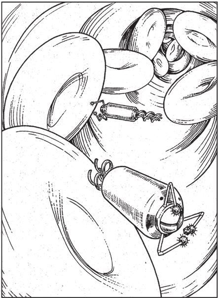 Рис. 9.5. Фантазия на тему нанотехнологий. Роботов командировали лечить поврежденные эритроциты.